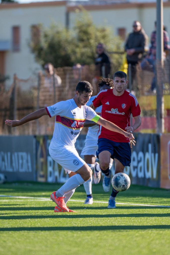 La gara si apre con i giallorossi subito in pressione: dopo appena 60 secondi arriva una punizione dal limite, deviata dalla barriera, preludio a un avvio arrembante. Sugli sviluppi di un corner Pinna prova a sorprendere tutti indirizzando verso la porta, ma un difensore salva sulla linea. L’Alghero continua a spingere e sfiora il vantaggio con un colpo di testa di Virdis su angolo di Mereu, sul quale il portiere compie un intervento straordinario.